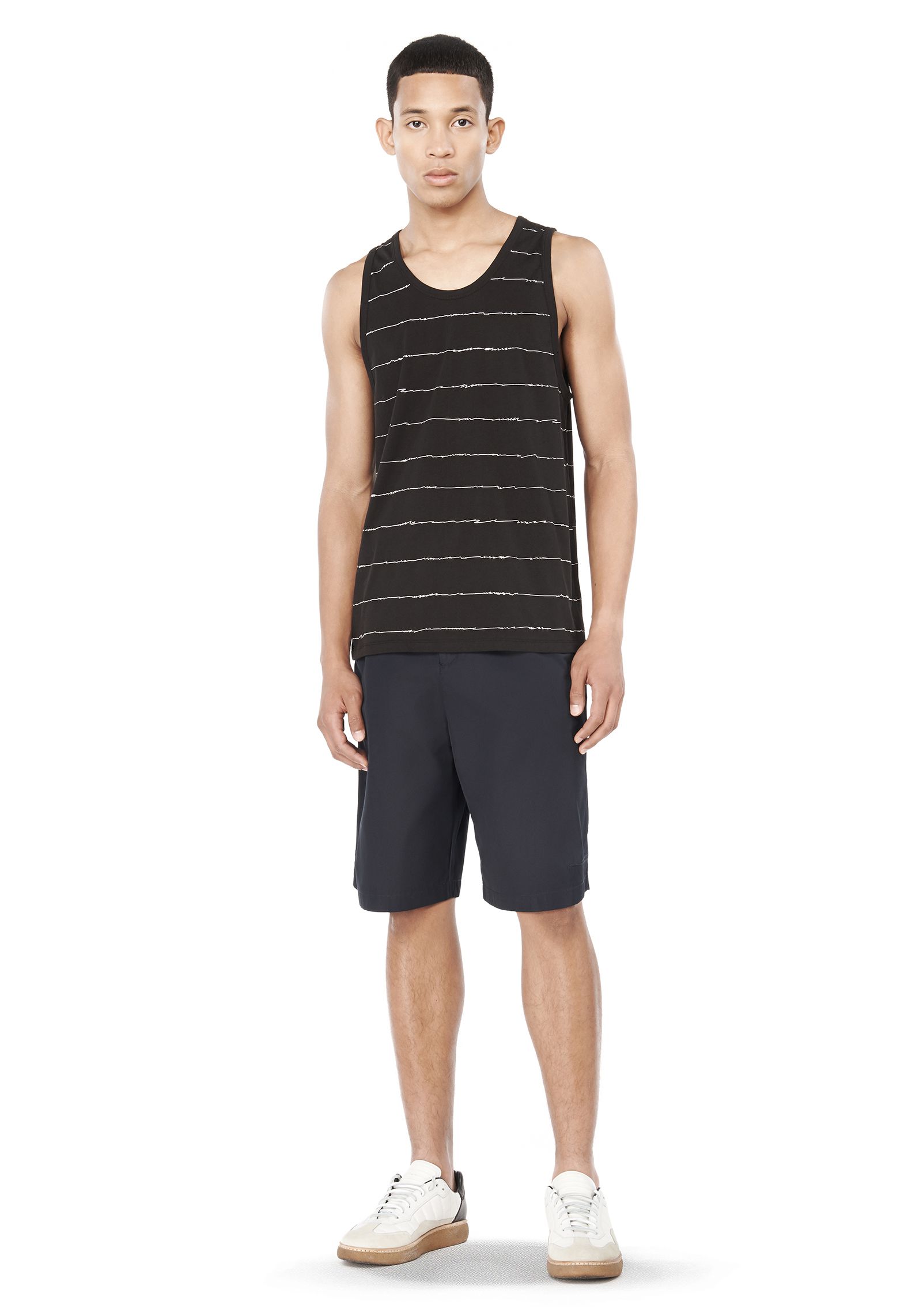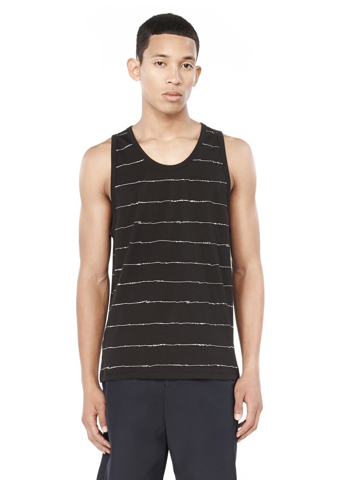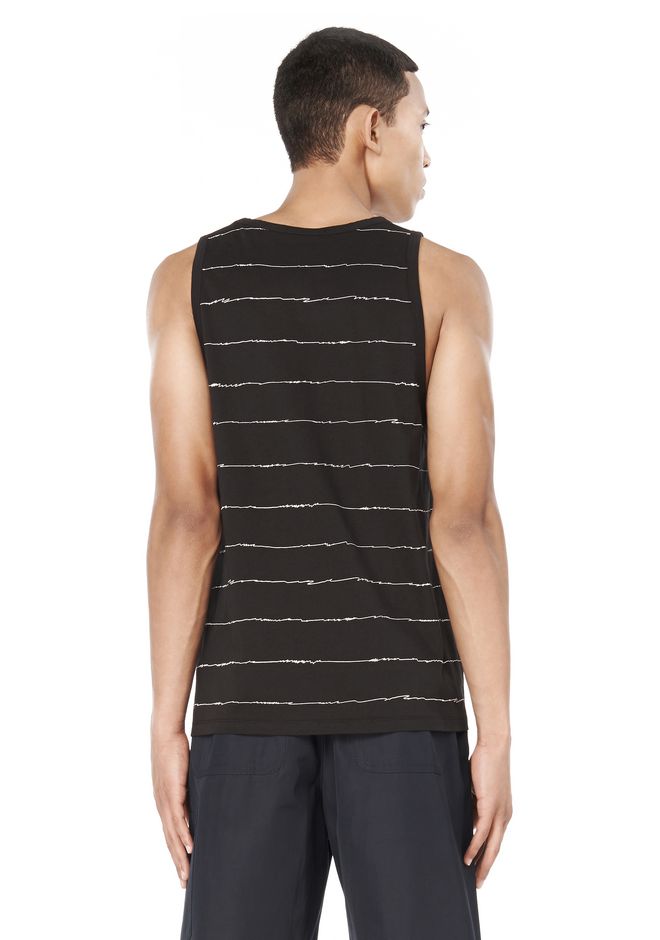 Classic light cotton tank with a scribble stripe all over print.